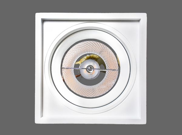 Spot de embutir quadrado direcionável MICRO BORDA para lâmpada AR111 para uso interno, embutido em forro de gesso ou similar com design moderno e agradável.